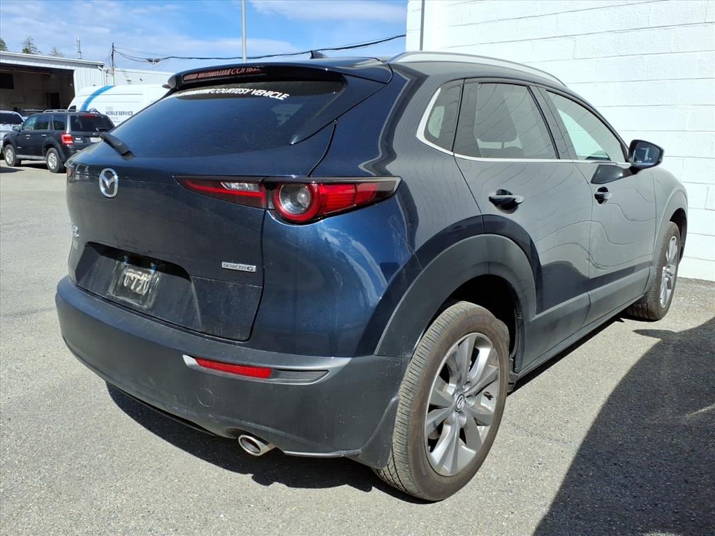 Protect the vehicle from unwanted accidents with a cutting edge backup camera system. This vehicle is a certified CARFAX 1-owner. You'll never again be lost in a crowded city or a country region with the navigation system on this small suv. The vehicle stays safely in its lane with Lane Keep Assist. This vehicle's blind spot monitor enhances safety. The leather seats in this unit are a must for buyers looking for comfort, durability, and style. The vehicle offers Android Auto for seamless smartphone integration. It offers Apple CarPlay for seamless connectivity. This unit features a hands-free Bluetooth phone system. This unit keeps you comfortable with Auto Climate. This 2025 Mazda CX-30 is a manufacturer certified pre-owned vehicle. Engulf yourself with the crystal clear sound of a BOSE sound system in the vehicle. This vehicle has a 4 Cyl, 2.5L high output engine. Conquer any rainy, snowy, or icy road conditions this winter with the all wheel drive system on it.