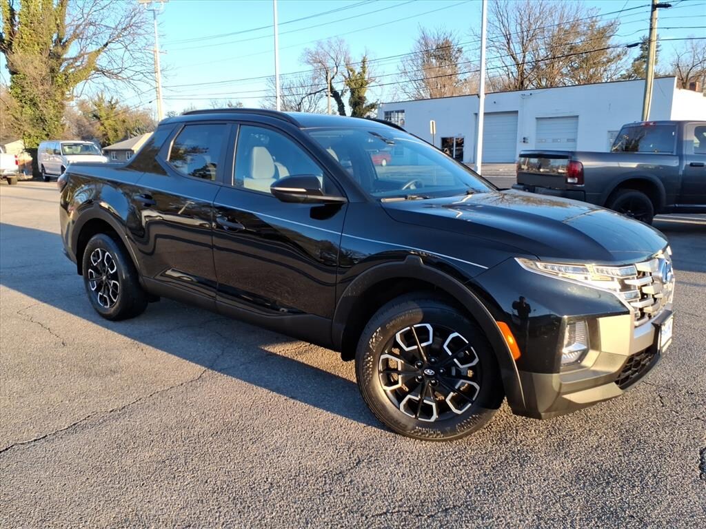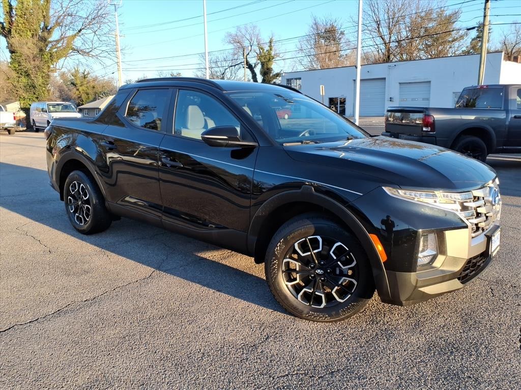 The vehicle offers Android Auto for seamless smartphone integration. See what's behind you with the back up camera on this small pickup. This vehicle features a hands-free Bluetooth phone system. This small pickup offers Apple CarPlay for seamless connectivity. Start this unit from inside with remote start. This vehicle is a certified CARFAX 1-owner. This unit has a clean CARFAX vehicle history report. Quickly unlock this 2023 Hyundai Santa Cruz with keyless entry. This 2023 Hyundai Santa Cruz has an elegant black exterior finish. Maintaining a stable interior temperature in the vehicle is easy with the climate control system. This small pickup has four wheel drive capabilities. It has a 4 Cyl, 2.5L high output engine. The Electronic Stability Control will keep you on your intended path. Help alleviate lower back pain with the driver seat lumbar support in this unit. Easily set your speed in this unit with a state of the art cruise control system. Increase or decrease velocity with the touch of a button.