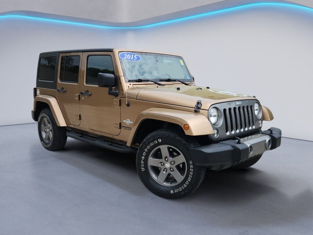 The Jeep Wrangler has four wheel drive capabilities. This model has an automatic transmission. This model is protected with a UV resistant earth toned brown color. Good News! This certified CARFAX 1-owner vehicle has only had one owner before you. This model has a clean CARFAX vehicle history report. Maintaining a stable interior temperature in this 2015 Jeep Wrangler is easy with the climate control system. Easily set your speed in it with a state of the art cruise control system. Increase or decrease velocity with the touch of a button. The Electronic Stability Control will keep you on your intended path. The vehicle has a V6, 3.6L high output engine. The fog lights cut through the weather so you can see what's ahead. Enjoy the tried and true gasoline engine in the vehicle. Bluetooth technology is built into this 2015 Jeep Wrangler , keeping your hands on the steering wheel and your focus on the road. This mid-size suv has heated side mirrors to keep your vision clear in winter weather. Quickly unlock the Jeep Wrangler with keyless entry. The leather seats are soft and supportive on this Jeep Wrangler. The spacious cabin accommodates your family and friends in comfort. Take it to the mountains or the beach. the Jeep Wrangler can handle it all. The satellite radio system in this vehicle gives you access to hundreds of nation-wide radio stations with a clear digital signal.