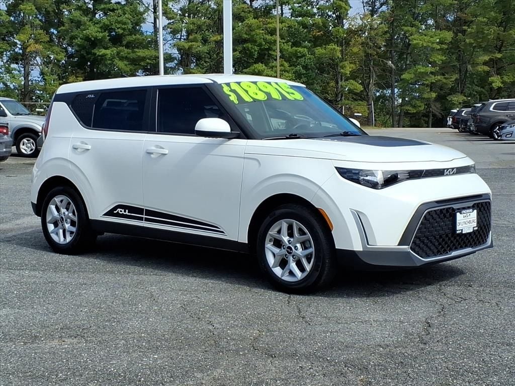 2023 Kia Soul LX â" 33,667 miles â" Lynchburg, VA This 2023 Kia Soul LX pairs distinctive style with practical performance, boasting a fuel-efficient 2.0L 4-cylinder engine and front-wheel drive for confident daily commuting. With only 33,667 miles and a CARFAX 1-Owner history, this Kia Soul delivers dependable ownership and documented care. The LX trim comes equipped with modern connectivity and safety features including Apple CarPlay, hands-free Bluetooth, a back-up camera, and Collision Avoidance technology to enhance convenience and peace of mind on every trip. Inside, the Kia Soul offers a comfortable cabin with thoughtful ergonomics and versatile cargo space for errands, road trips, or weekend gear. Efficient engineering and Kiaâs smart packaging make the Kia Soul an economical choice without sacrificing comfort or tech. Exterior styling stands out on city streets while FWD balance contributes to stable handling and efficient fuel use. Located in Lynchburg, VA, this 2023 Kia Soul LX is competitively priced and advertised as the best price in the area, providing excellent value for a low-mileage, well-maintained compact crossover. Ideal for budget-conscious buyers seeking modern infotainment, driver-assist features, and a strong vehicle history, this Kia Soul represents a smart, practical buy. Contact the showroom to schedule a test drive or request the vehicleâs CARFAX report and listing details.